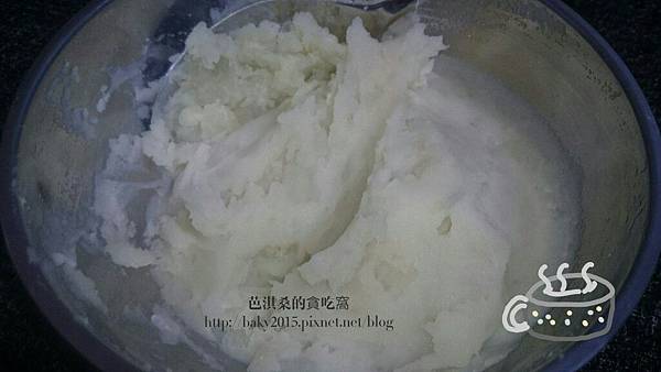 - 分出300g的馬鈴薯,趁熱壓碎成泥,其餘放一旁備用。