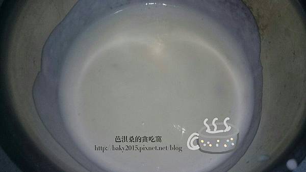 - 將薯泥加入鮮奶用果汁機打散,再加入分量中的水(因為還要煮過,水份可稍微多加一點,濃淡再依自己洗好調整)。