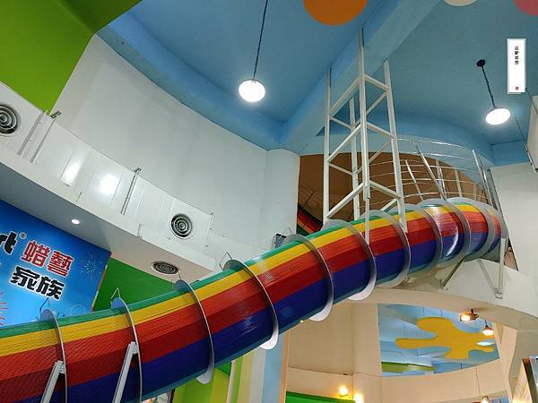這是新館引以為傲的亞洲最長的彩虹溜滑梯,門票加購溜一次是100元,需要穿防護衣才可以溜喔。