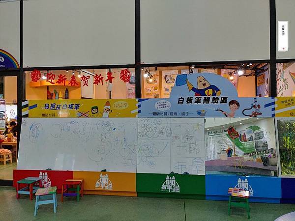 這個是針對蠟藝公司製造出來的白板蠟筆體驗區,可以使用在白板、光滑的磁磚、鏡面等光滑材質上使用,而且十分容易擦拭喔。