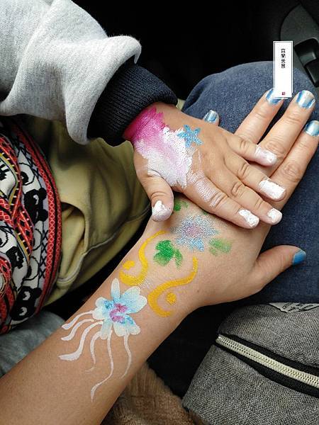 水彩的人體彩繪體驗設備忘記拍照了,總之就是提供顏料簡單讓自己塗塗畫畫噢。