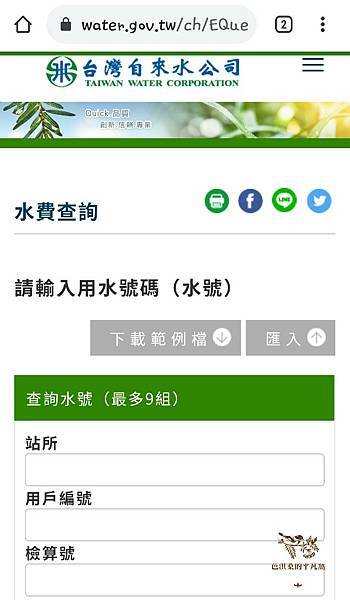 (如果手上剛好沒有水費帳單,也可以打1910的24小時免費客服電話去詢問噢,只要提供用水地址與用戶名就可以了。)