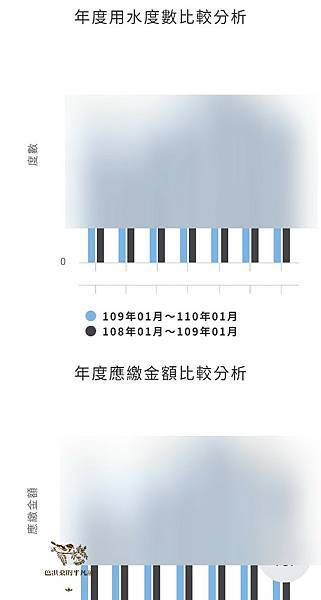 底下甚至還有前推兩年的長條圖比較分析表,看起來十分的清晰,過去歷史的用水度數以及繳費金額一目瞭然。